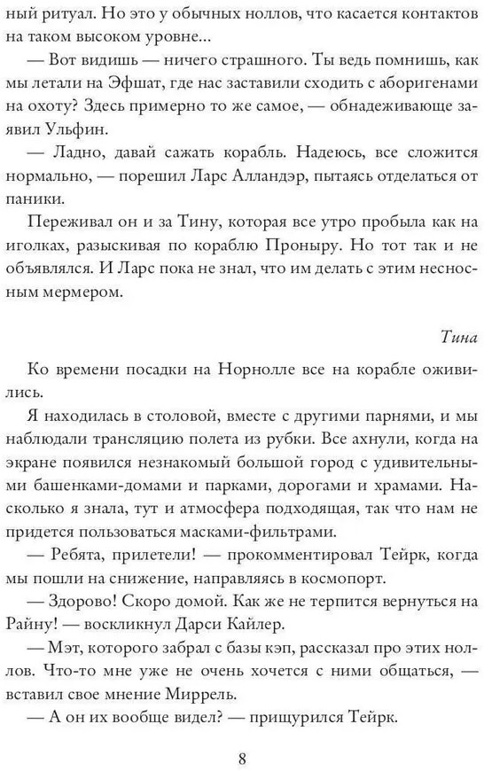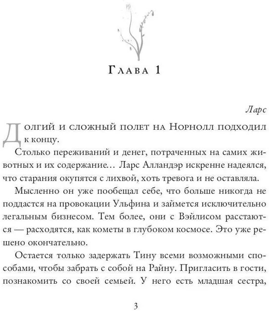 До далекого Норнолла мы долетели, хоть и с приключениями. Но расслабляться слишком рано, ведь у нелегальной сделки есть своя цена. Дикие ритуалы, тайны королевы ноллов, побег с планеты — не предел. А еще нужно найти предателя и раскрыть связь с галактическим магнатом Кастором Далингером, за шпионку которого меня и приняли на корабле. Хуже всего, что мои отношения с Ларсом и Ульфином запутались окончательно! Пора разобраться, кто из райнарцев дорог мне по-настоящему. Я должна сделать самый сложный в жизни выбор. Или... Дайте два? |