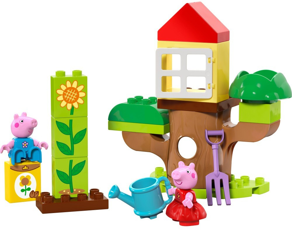 Эта обучающая игрушка «Свинка Пеппа» Lego Duplo для детей дошкольного возраста помогает малышам развивать множество навыков: от решения проблем и настойчивости в выращивании растения до обучения заботе о природе и самовыражению, разыгрывая, как Пеппа и Джордж делятся работой и играют. в саду вместе.