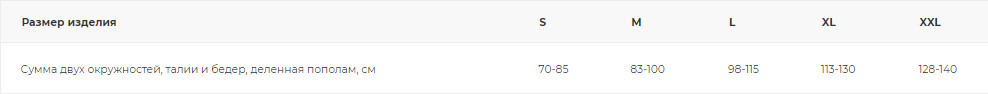 • согласно полученному результату, подбирается размер по таблице