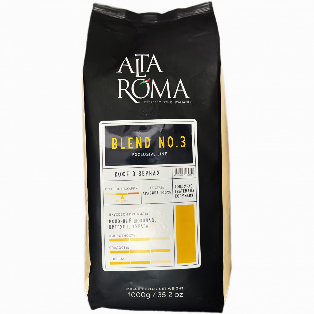 Благодаря средней обжарке зерен приобрел изысканный вкус с легкими фруктовым ароматом и деликатным вкусом. В основе профиля раскрываются ноты какао, которые сопровождают ненавязчивые цитрусовые оттенки. Послевкусие стойкое и сладкое. Кофе в зернах Blend №3 рекомендован для автоматической кофемашины или для вендинга. В молотом виде подходит для приготовления напитка классическими или альтернативными способами: турка, гейзерная или капельная кофеварки, френч-пресс, кемекс.