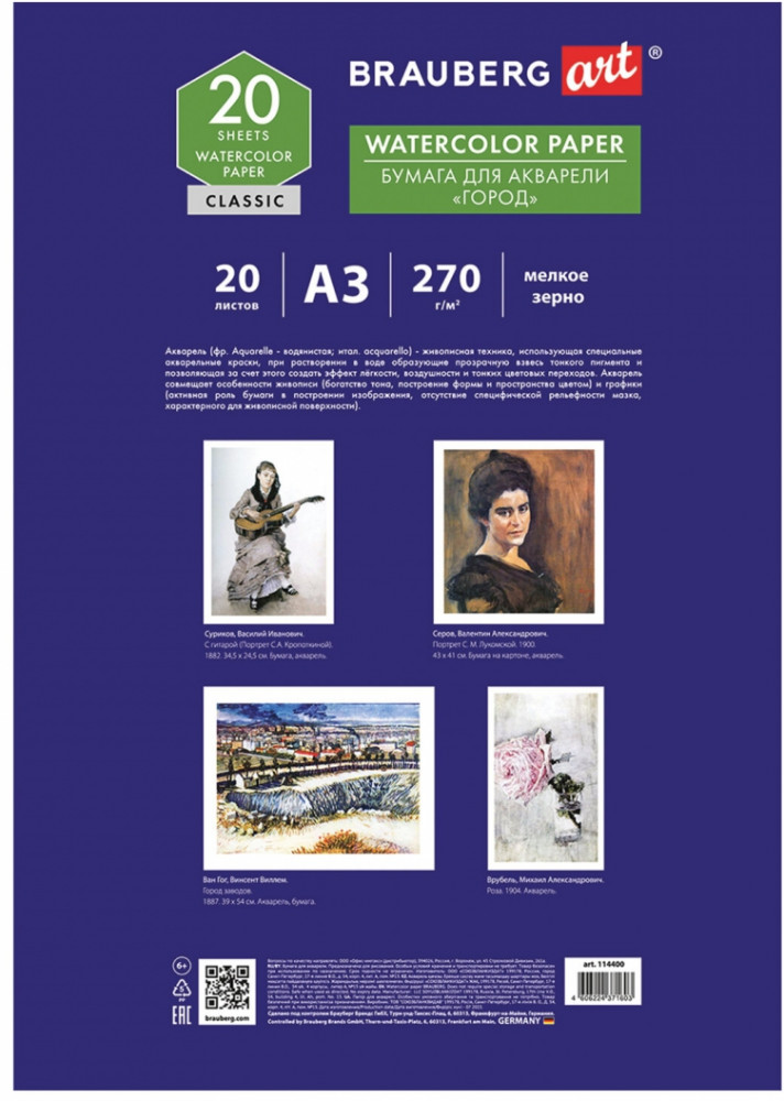 💳 Оплатить за товар можно при получении 🇰🇿 Есть бесплатная доставка по Казахстану от 1 дня 🎁 Копите бонусы с каждой покупки Серия: Classic Бумага для акварели Brauberg art «Classic» содержит набор листов, специально предназначенных для рисования всеми видами водорастворимых красок. Содержит 20 листов формата А3 (297 × 420 мм). Качественные листы высокой плотности 270 г/м2 устойчивы к истиранию, воздействию влаги, обеспечивают чистую реалистичную передачу цвета. Белизна 100%. Прекрасно подходит для иллюстраций, миниатюр, позволяет прорабатывать мелкие детали. Обложка выполнена из мелованного картона. |
