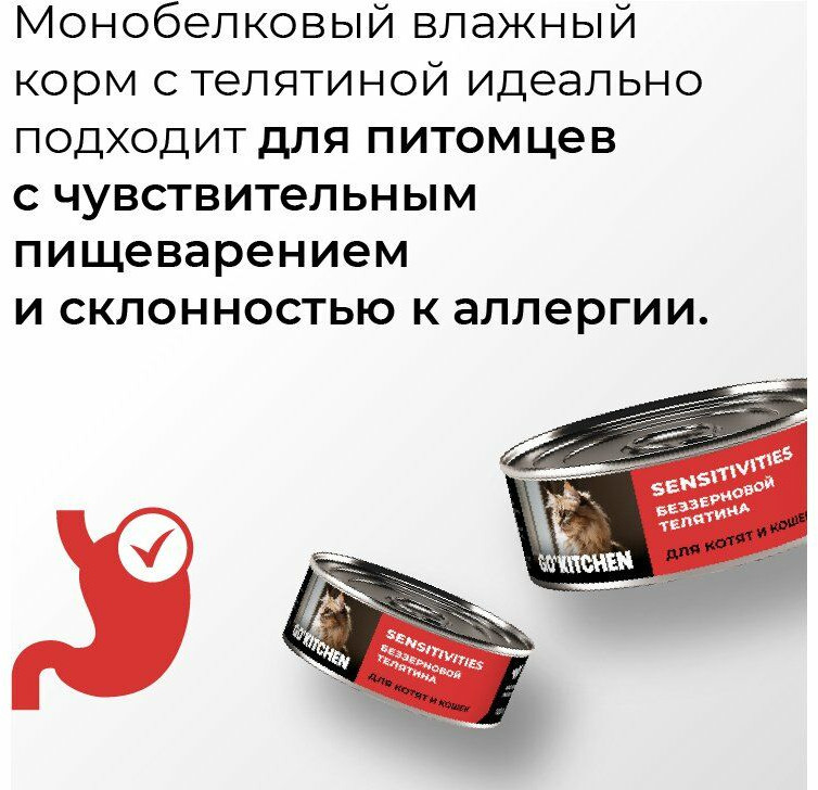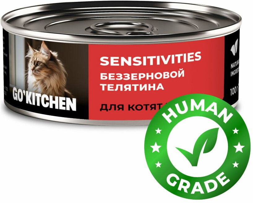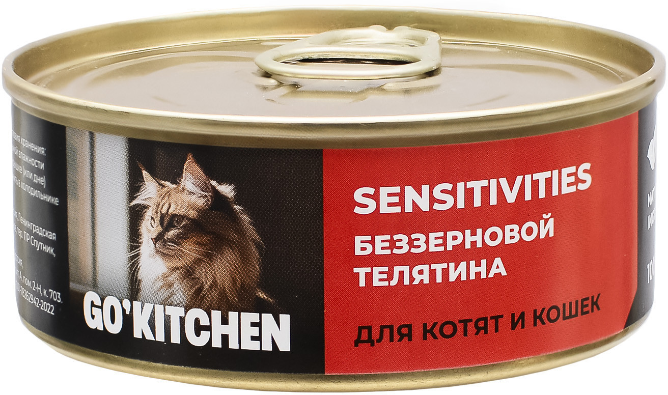 Go'kitchen Консервы беззерновые для котят и кошек с телятиной