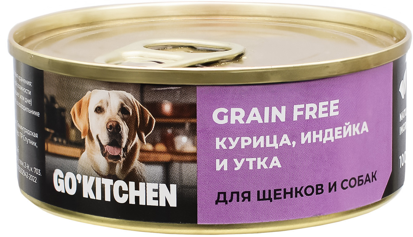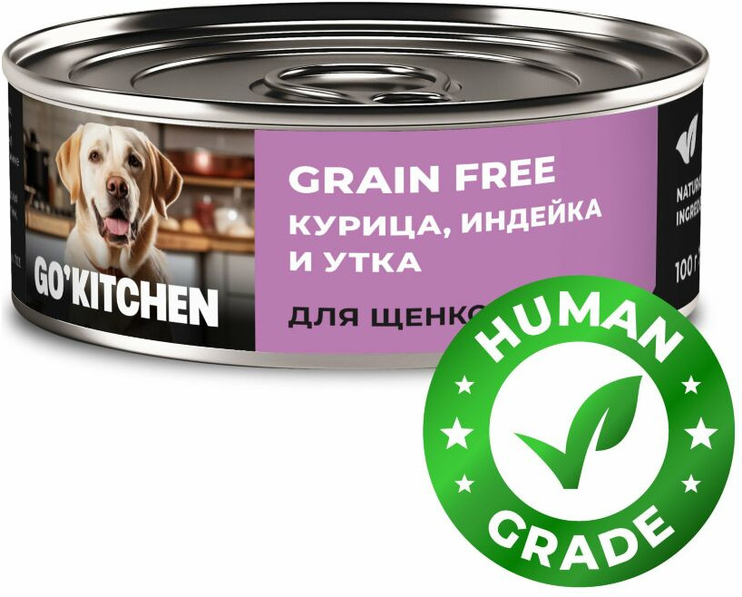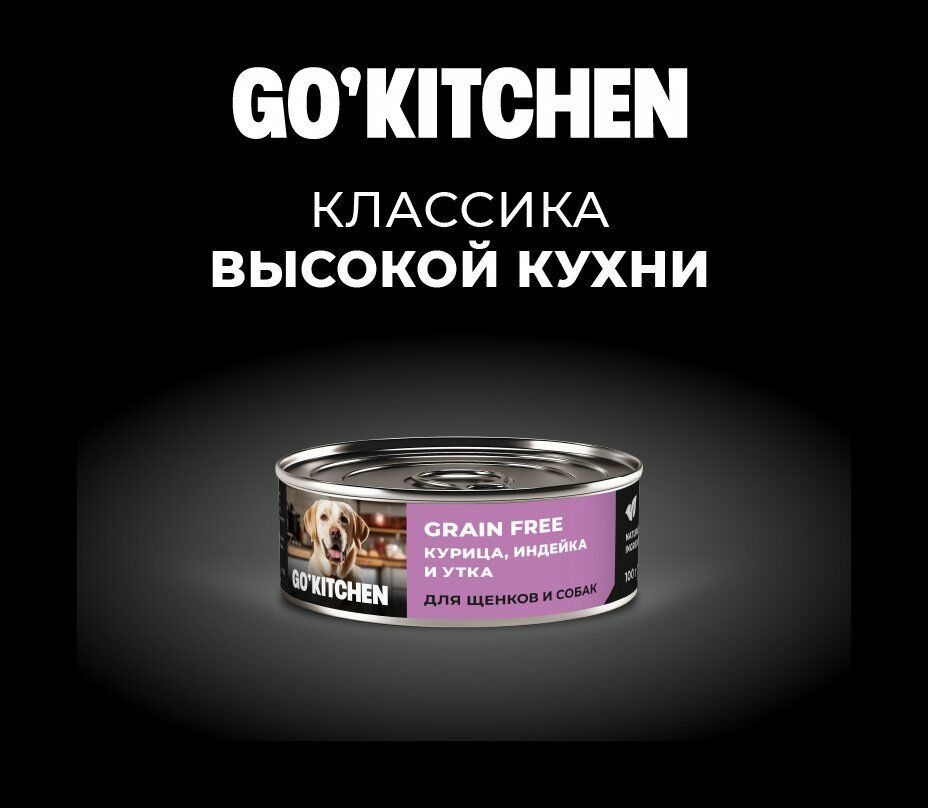 Go'kitchen Консервы беззерновые для щенков и собак с курицей, индейкой и уткой