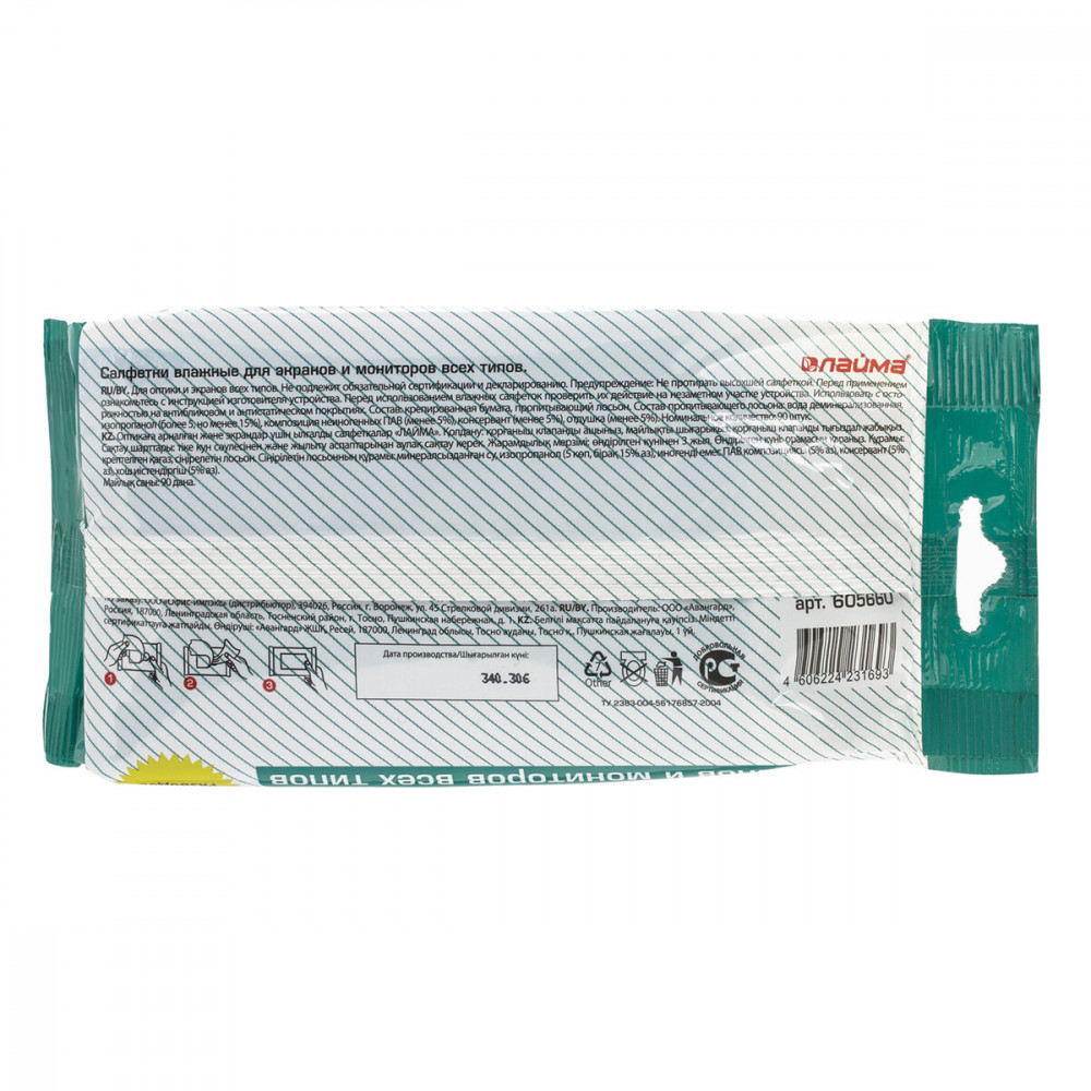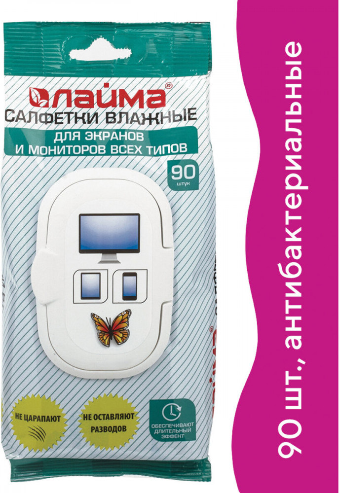Laima Салфетки влажные для экранов и мониторов-20% большие удобно протирать