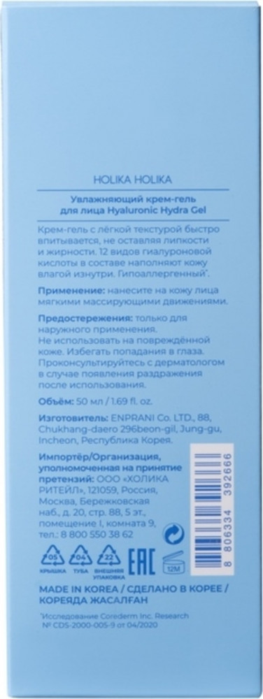 Holika Holika Увлажняющий крем-гель для лица с гиалуроновой кислотой «Hyaluronic Hydra Gel Cream»В данный момент этот товар отсутствует в продаже. Возможно, у нас найдется аналогичный или похожий товар здесь. Увлажняющий гиалуроновый крем-гель для лица. Обеспечивает интенсивное увлажнение сухой кожи, при этом имеет легкую гелевую текстуру, быстро впитывается и не оставляет ощущения липкости. Гипоаллергенный. 12 видов гиалуроновой кислоты в составе наполняют кожу влагой изнутри. Содержит Аквапорины - естественные проводник влаги. Гидролизованный экстракт Фиалки трехцветной стимулирует синтез аквапоринов, тем самым повышает циркуляцию воды и способность кожи удерживать влагу внутри. Содержит бетаин (активный растительный компонент для увлажнения кожи) и аллантоин (успокаивает кожу и повышает ее защитные свойства). |