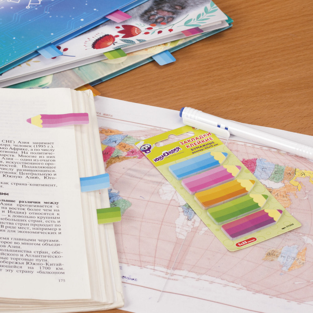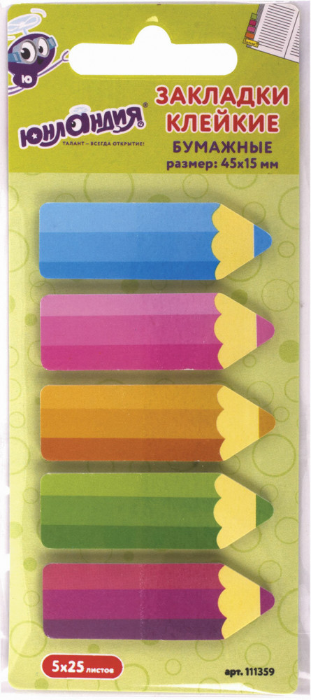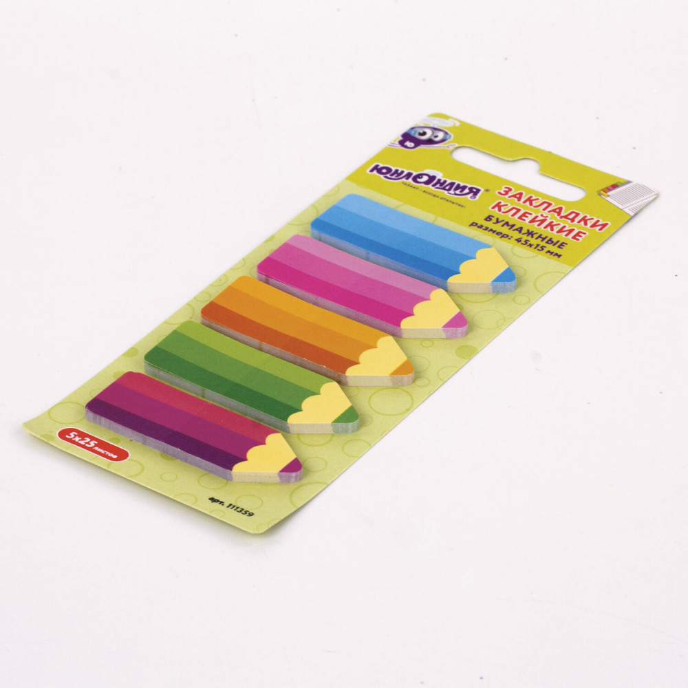 Клейкие закладки «Фигурные карандаши» с привлекательным дизайном акцентируют внимание на важных страницах книги или журнала. Упростите работу с книгами и тетрадями с помощью стильных клейких закладок. Крепятся к любой поверхности, сохраняют свои свойства даже при многократном применении. В наборе по 25 закладок каждого из 5 цветов. Размер закладки: 4.5 × 1.5 см. Клейкий слой — 32 Н/м. Материал закладок позволяет делать на них надписи ручкой или карандашом.