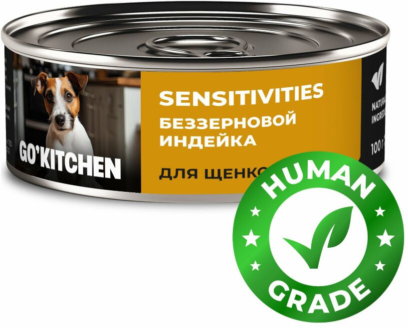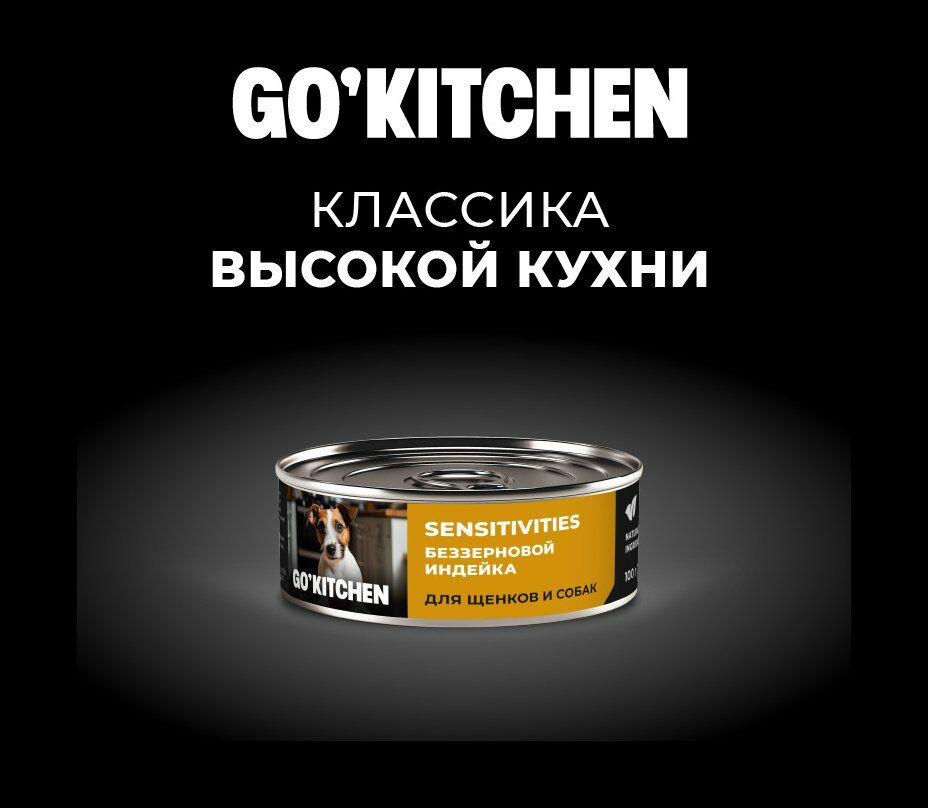 Go'kitchen Консервы беззерновые для щенков и собак с индейкой