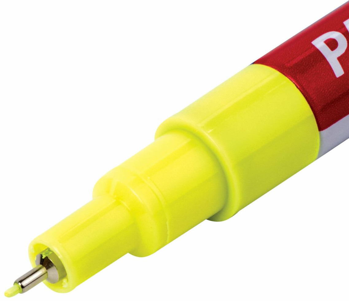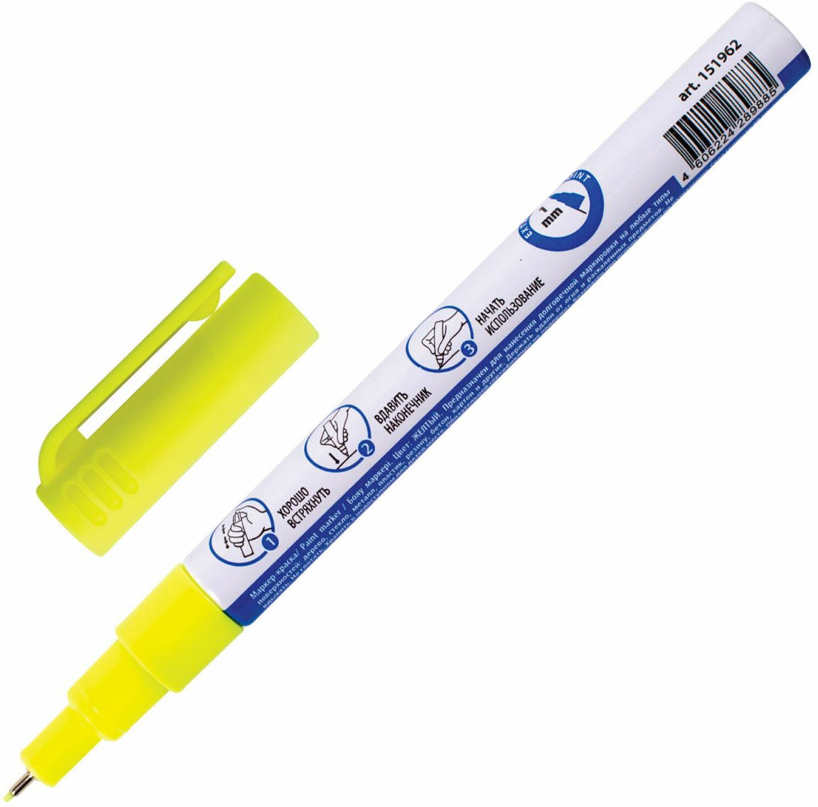 Высококачественные чернила желтого цвета с лаковым эффектом идеально подходят для нанесения долговечной маркировки на любые поверхности. Благодаря усиленной формуле чернил краска ложится ровным слоем, полностью закрашивая поверхность. С помощью игольчатого прочного наконечника, выполненного из полиацетали с шириной линии письма 1 мм, можно легко наносить тонкие линии. Быстросохнущие чернила предотвращают смазывание в процессе маркировки. После высыхания надписи становятся термо- и водостойкими, а также устойчивыми к выцветанию и механическому истиранию. Отлично подходит для маскировки бытовых дефектов, таких как царапины и сколы. Надежный помповый механизм подачи чернил предотвращает вытекание и разбрызгивание в процессе использования, а также преждевременное высыхание. Корпус маркера выполнен из алюминия, внутри находятся 2 металлических шарика для взбалтывания краски. Цвет колпачка соответствует цвету чернил.