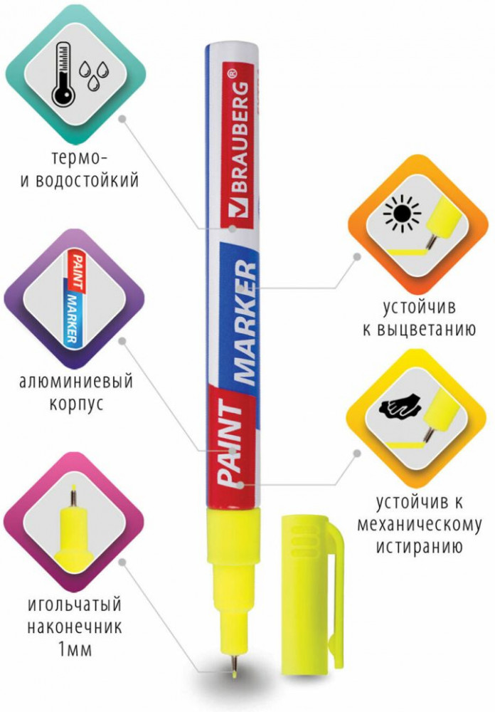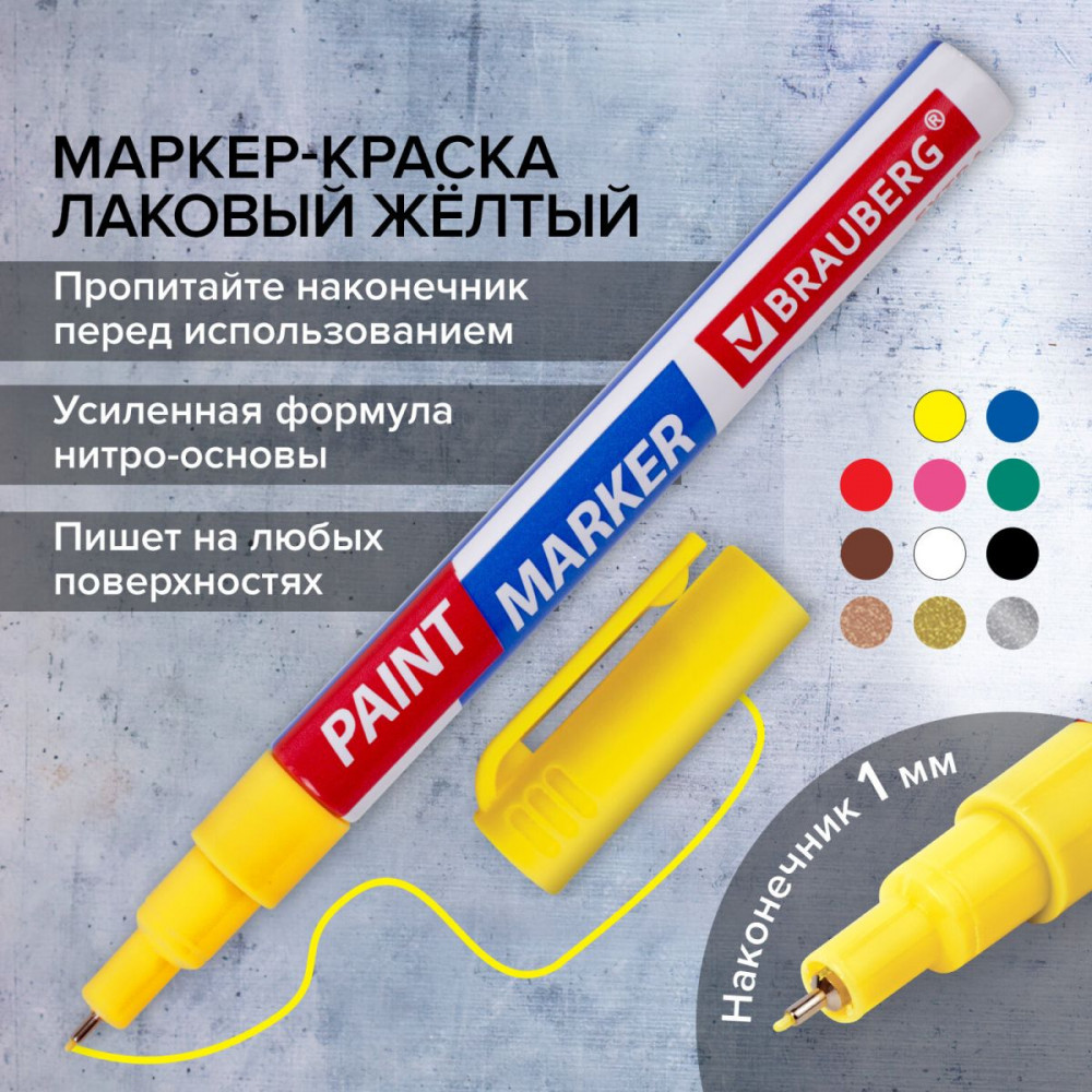 Маркер-краска лаковый Brauberg «Extra» предназначен для маркировки на различных поверхностях: бетон, дерево, стекло, металл, резина, пластик как в промышленных, так и в бытовых целях.
