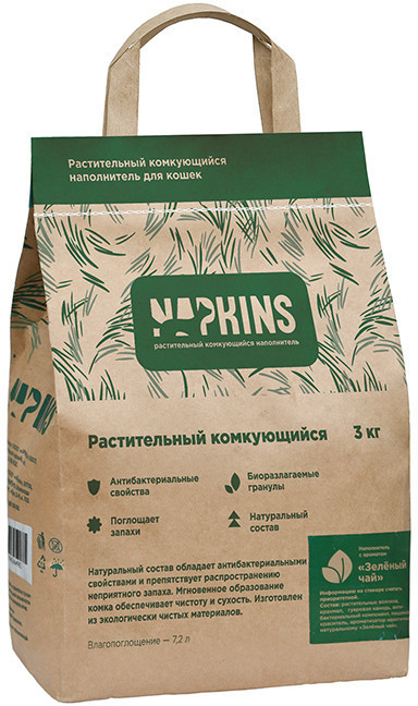 Napkins Наполнитель для кошачьего туалета комкующийся «Зеленый чай»-20% +68