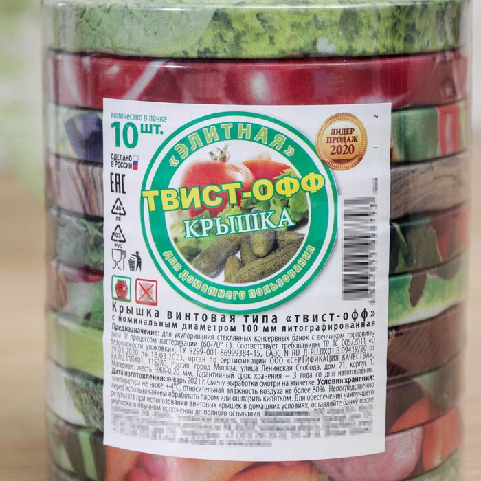 Набор крышек для консервирования «Элитная»В данный момент этот товар отсутствует в продаже. Возможно, у нас найдется аналогичный или похожий товар здесь. Крышка Твист-офф — представляет собой штампованное металлическое укупорочное средство с упорами для завинчивания, изготовленное из лакированной пищевыми консервными лаками и эмалями белой жести с внутренним уплотнением из материала на основе ПВХ. |