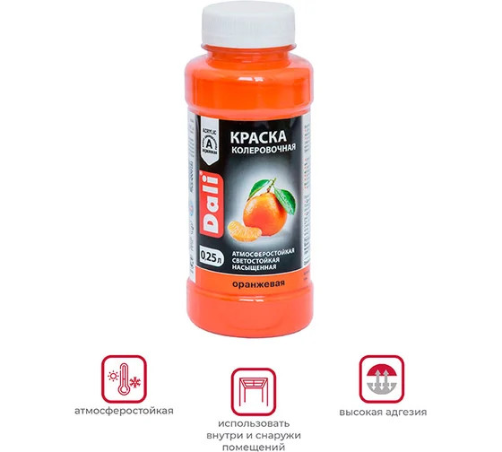 Для колеровки водно-дисперсионных ЛКМ: понемногу добавлять в колеруемый материал, постоянно перемешивая до получения желаемого оттенка. Для получения более точного результата, руководствоваться вариантами разбелов по Карте цветов Краски колеровочной DALI™ Допускается смешивание различных цветов между собой.