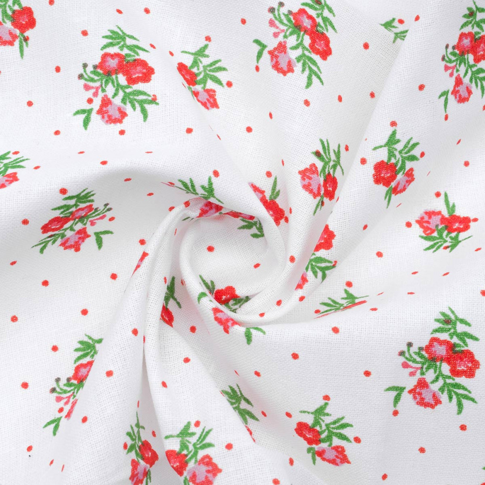Хлопковый ситец с набивным рисунком Цветочная сорочка от Astra&Craft имеет матовую текстуру с обеих сторон. Поделки из ситца особенно практичны, ведь он долговечнее и плотнее бязи, устойчив к загрязнениям и почти не мнется. С помощью этой ткани с набивным рисунком вы сможете украсить свой дом и воплотить в жизнь самые разные творческие идеи.