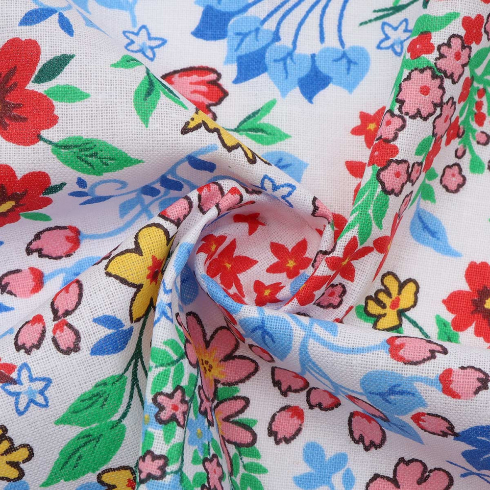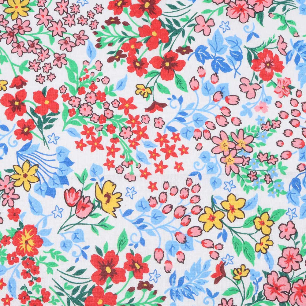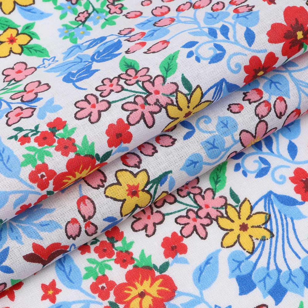 Хлопковый ситец с набивным рисунком Цветочная сорочка от Astra&Craft имеет матовую текстуру с обеих сторон. Поделки из ситца особенно практичны, ведь он долговечнее и плотнее бязи, устойчив к загрязнениям и почти не мнется. С помощью этой ткани с набивным рисунком вы сможете украсить свой дом и воплотить в жизнь самые разные творческие идеи.