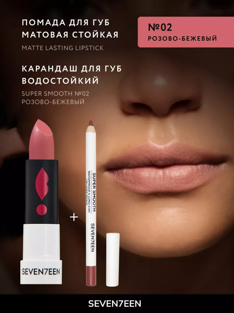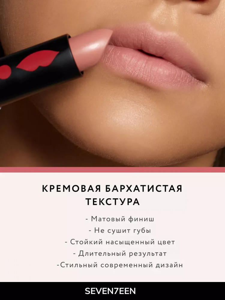 SEVEN7EEN Помада для губ устойчивая матовая «Matte lasting lipstick» SPF 15, тон 2 Розовый беж