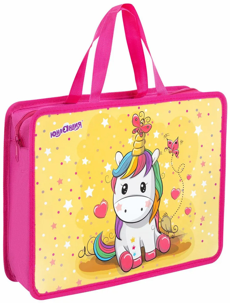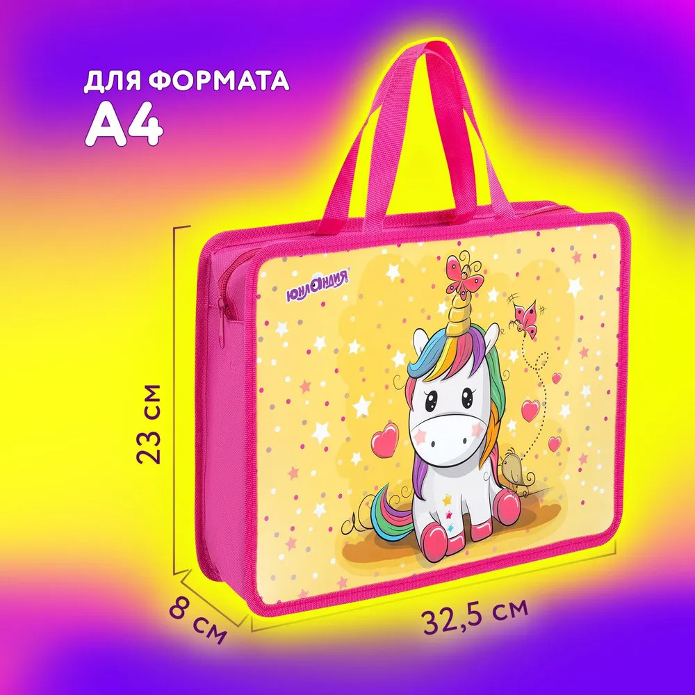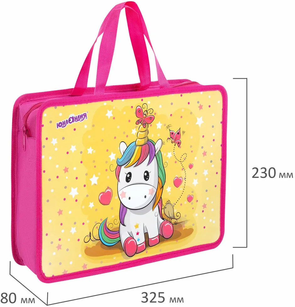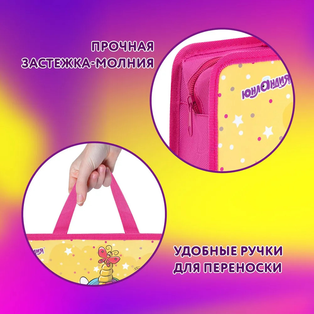 Папка на молнии с ручками Юнландия формата А4 предназначена для транспортировки и хранения канцелярских принадлежностей, тетрадей, учебников и пособий. Папка подходит для внешкольных занятий.