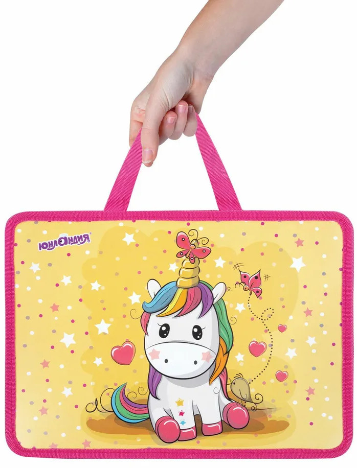 Папка-сумка на молнии выполнена из прочного пластика. Яркая печать коллекционного дизайна на лицевой стороне папки. Застежка-молния, расположенная сверху, обеспечивает быстрый доступ к содержимому. Двойные ручки, выполненные из плотной тесьмы, позволяют переносить папку в руках или вешать ее на крючок под партой. Юнландия— товары для учебы, развития и творчества высокого качества.