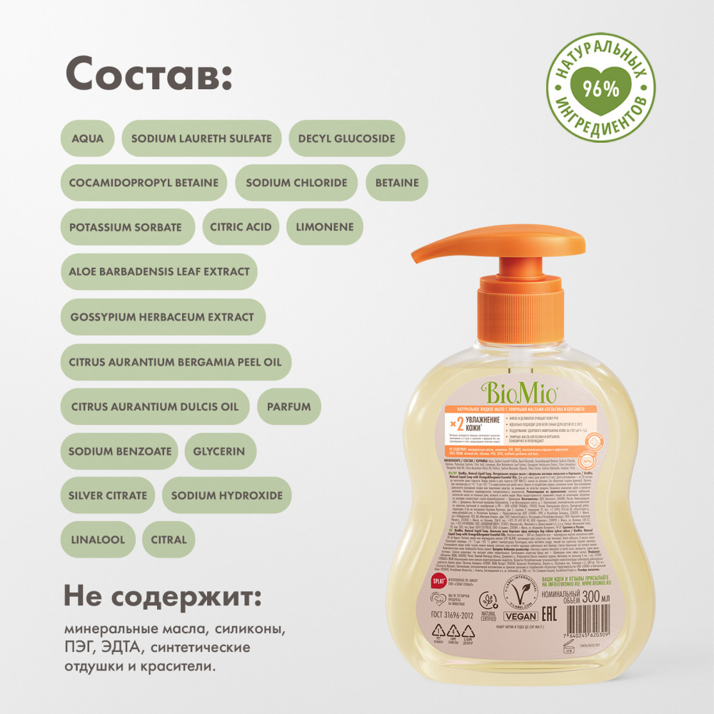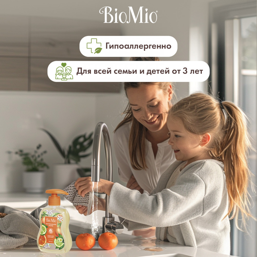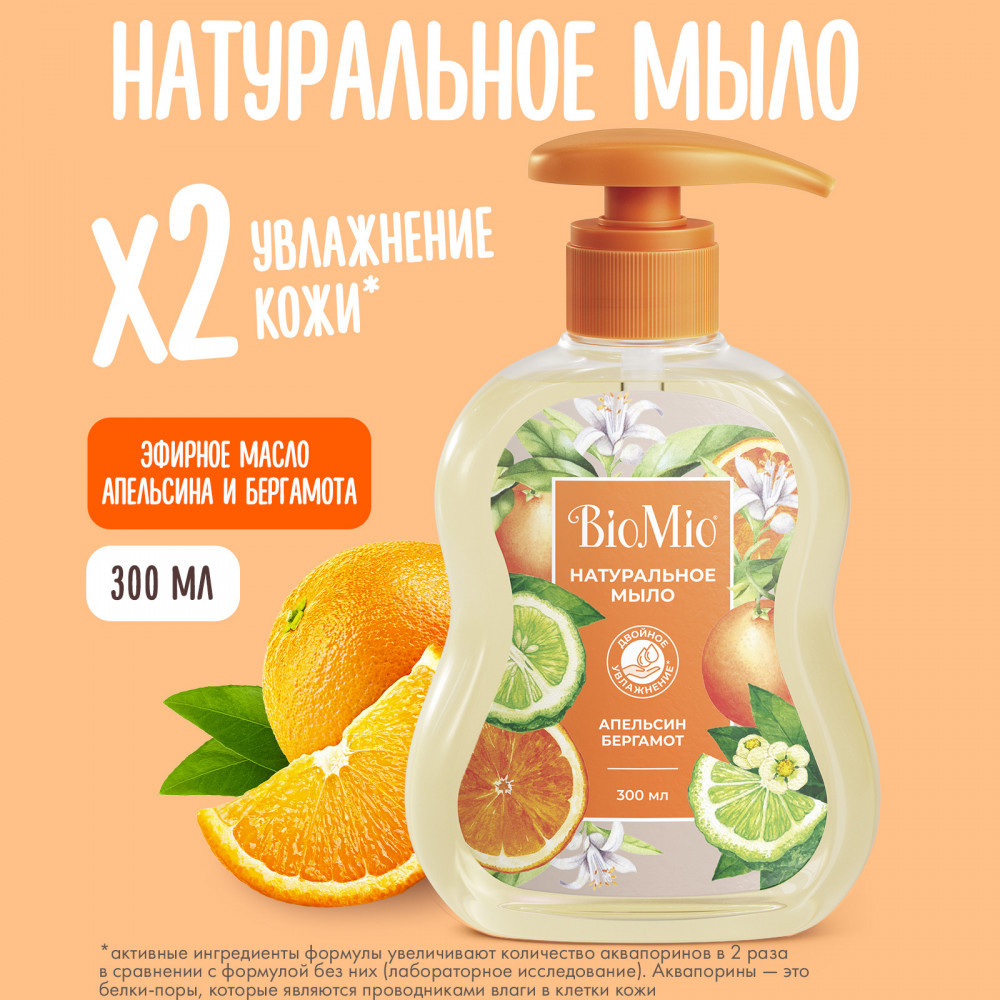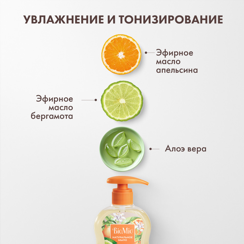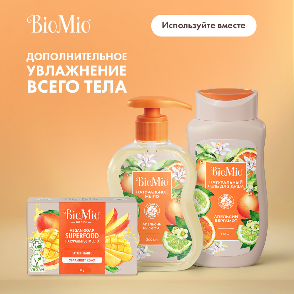 BioMio Натуральное жидкое мыло с эфирными маслами апельсина и бергамота «Natural Liquid Soap»