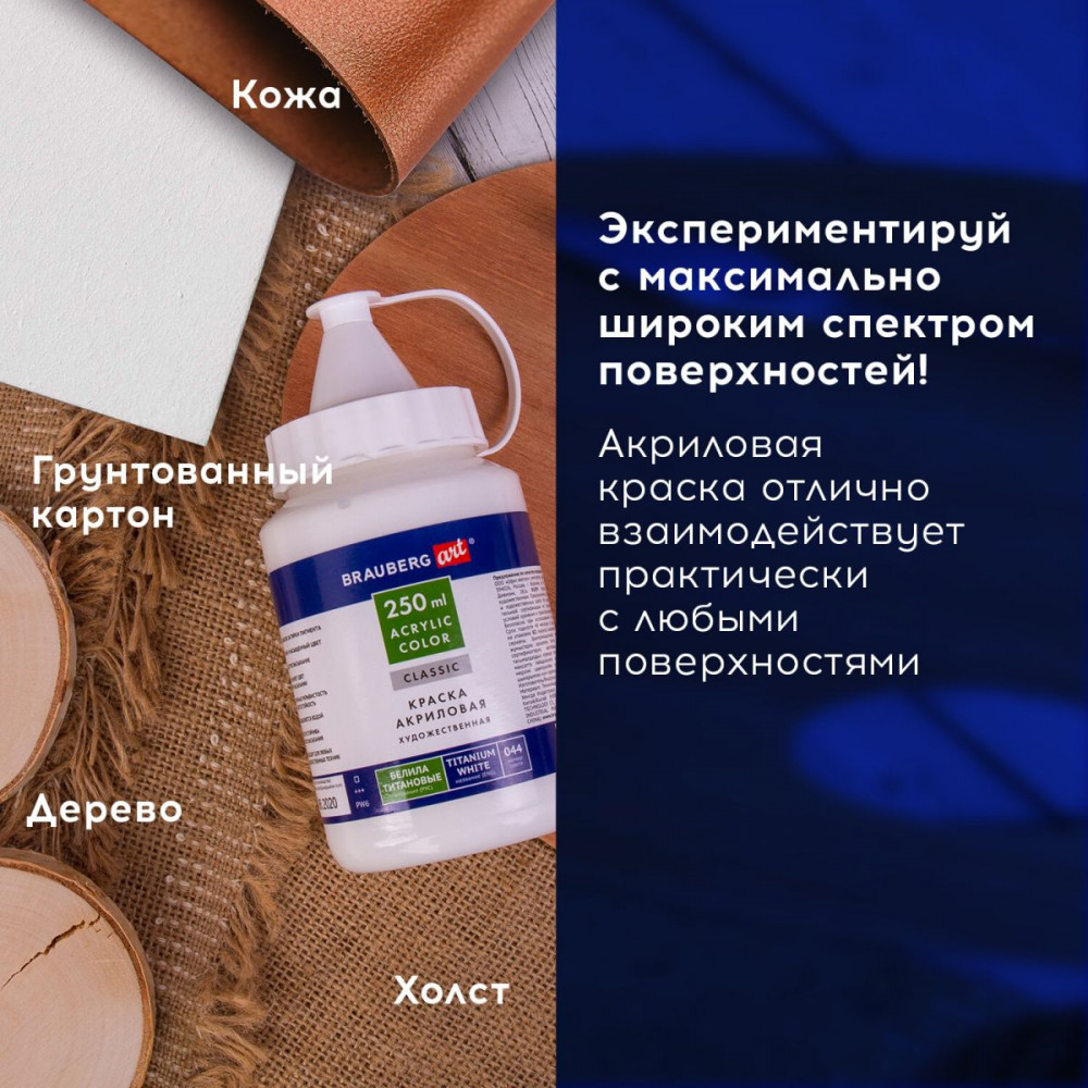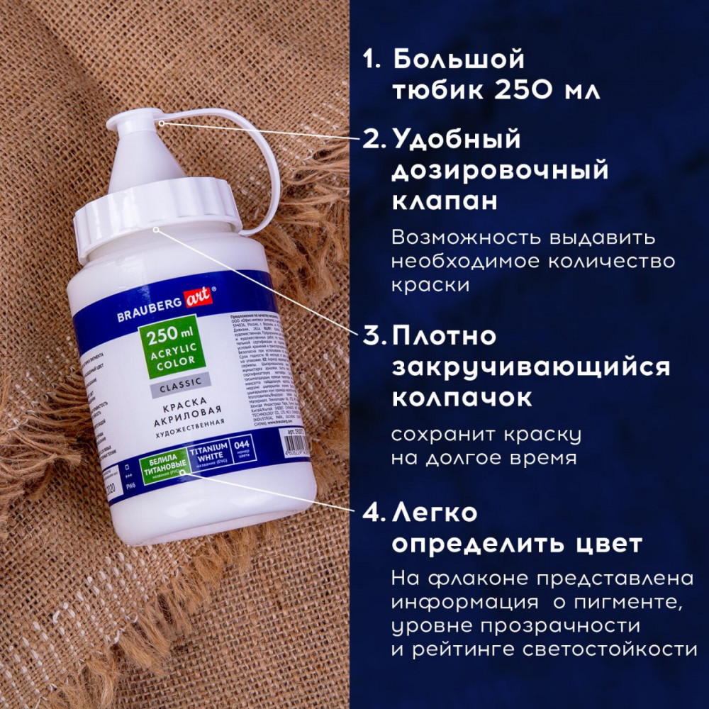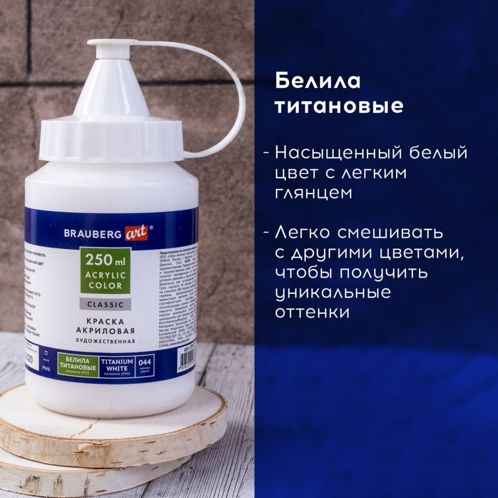 Brauberg Краска акриловая художественная, 044 белила титановые