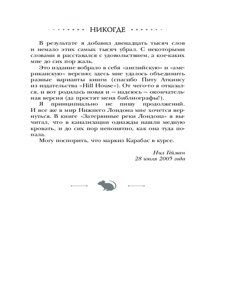 💳 Оплатить за товар можно при получении 🇰🇿 Есть бесплатная доставка по Казахстану от 1 дня 🎁 Копите бонусы с каждой покупки Серия: Мастера магического реализма (подарочное) Под улицами Лондона существует мир, о котором большинство людей и не подозревает. В нем слово становится настоящей силой. Туда можно попасть, только открыв Дверь. Этот мир полон опасностей, населен святыми и монстрами, убийцами и ангелами… Ричард Мэхью живет в Лондоне, снимает квартиру, работает в инвестиционной компании, а его невеста весьма неглупа, амбициозна и просто обворожительна. Все идет по плану. Но размеренная жизнь в буквальном смысле проваливается под землю, когда Ричард встречает на улице израненную девушку, умоляющую о помощи. Жест милосердия откроет для молодого человека дверь в удивительный и опасный мир — Нижний Лондон, где время и пространство не подвластны законам физики, смертельная опасность дышит в затылок, крысы управляют людьми и ангелы пьют вино из затонувшей Атлантиды. Вместе с новыми друзьями Ричарду предстоит невероятная миссия. Никто не знает, кто враг, любой может оказаться предателем, а каждая дверь — воротами в ад… |