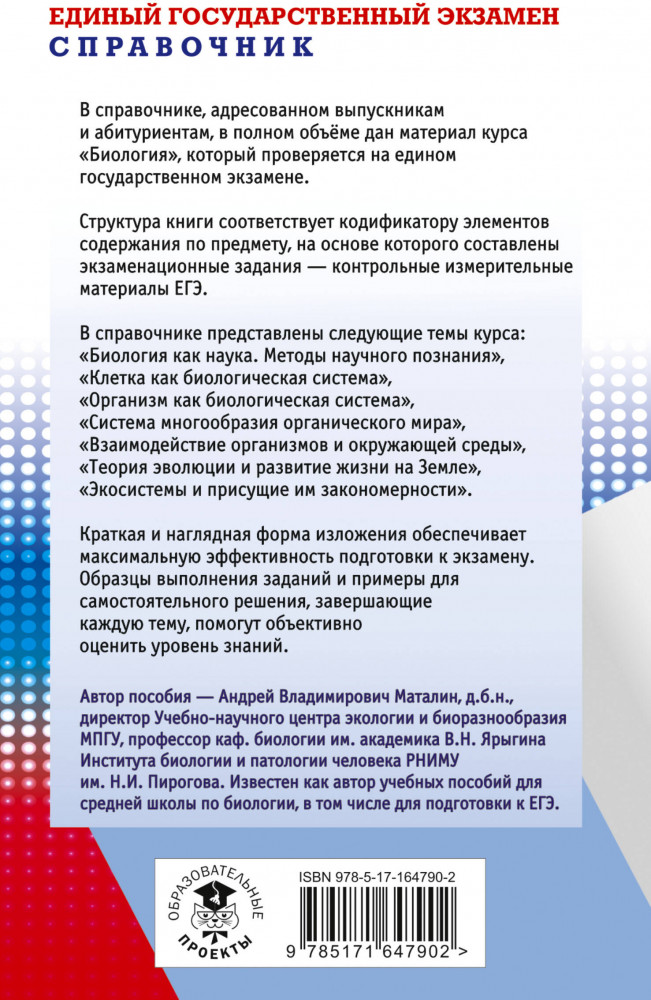 💳 Оплатить за товар можно при получении 🇰🇿 Есть бесплатная доставка по Казахстану от 1 дня 🎁 Копите бонусы с каждой покупки Серия: Самый популярный справочник для подготовки к ЕГЭ Справочник содержит теоретический материал по курсу биологии и тестовые задания, необходимые для подготовки к Государственной итоговой аттестации (ЕГЭ) выпускников 11-х классов общеобразовательных учреждений. Теория курса изложена в краткой и доступной форме. Каждый раздел сопровождается примерами тестов. Они дают исчерпывающее представление о типах заданий экзаменационной работы и о степени их сложности. В конце пособия имеются ответы на все задания. Пособие может быть использовано учащимися для подготовки к ЕГЭ и самоконтроля, а учителями — для подготовки учащихся средней школы к итоговой аттестации по биологии. Книга адресована учащимся, учителям и методистам. |
