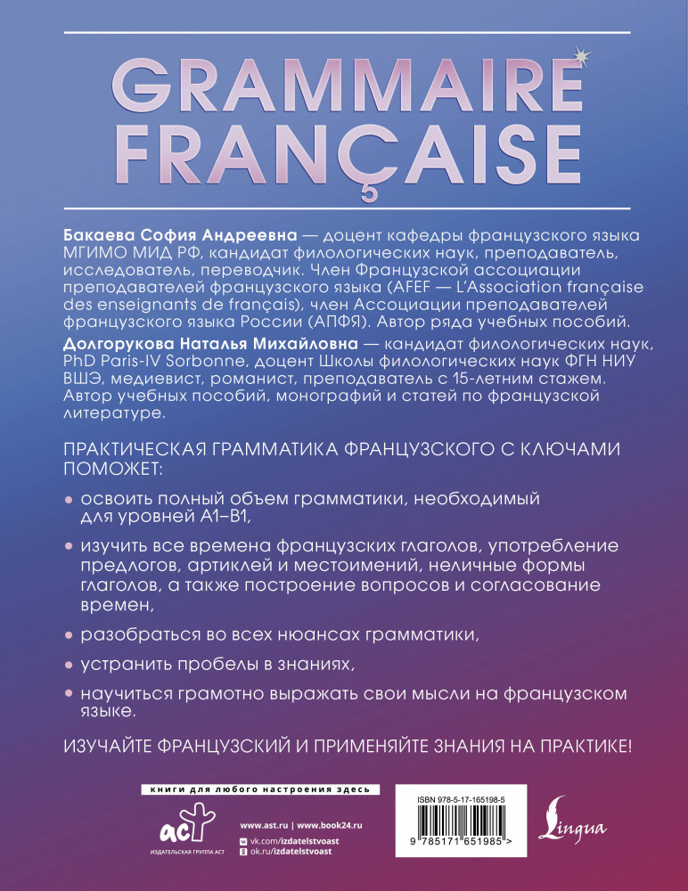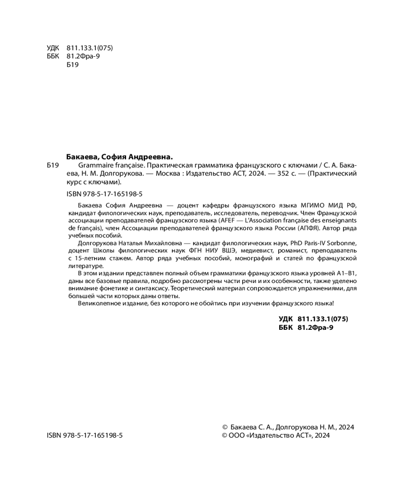 Grammaire française. Практическая грамматика французского с ключамиСофия Андреевна Бакаева, Наталья Михайловна Долгорукова +48