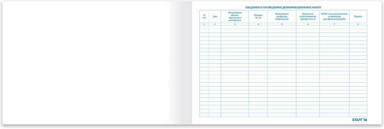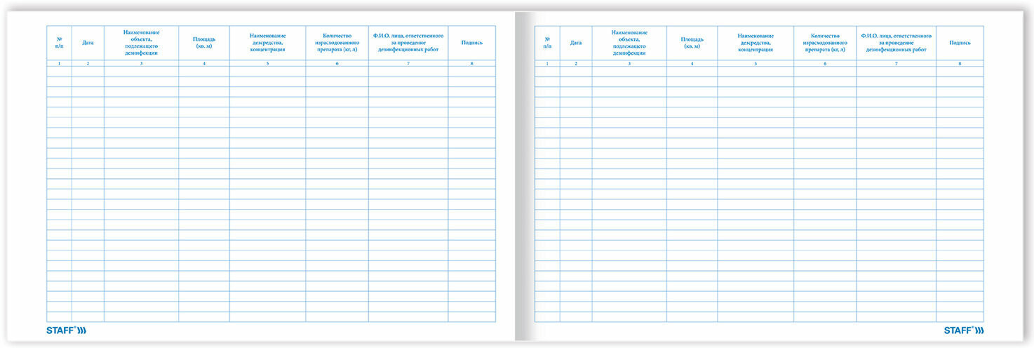 Staff Журнал дезинфекции помещенийВ данный момент этот товар отсутствует в продаже. Возможно, у нас найдется аналогичный или похожий товар здесь. Журнал дезинфекции помещений оформлен в соответствии с правилами управленческого учета. Обложка выполнена из высококачественного мелованного картона плотностью 240 г/м². Горизонтальная ориентация. Внутренний блок содержит 48 листов офсетной белой бумаги плотностью 65 г/м². Журнал дезинфекции помещений обеспечит надежную сохранность важных данных и поможет структурировать информацию. |