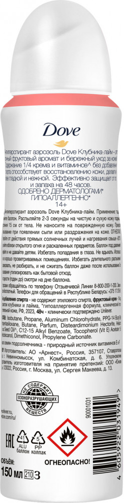 Dove Дезодорант-антиперспирант «Клубника и лайм»