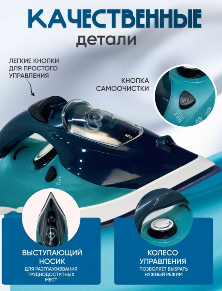 Корпус утюга с отпаривателем оснащен удобным отверстием для налива воды и вместительным резервуаром объемом 260 мл. Гаджет с самоочисткой эффективно удаляет накипь и минеральные отложения, продлевая срок службы техники. Очистка от накипи запускается всего одним нажатием на специальную кнопку.