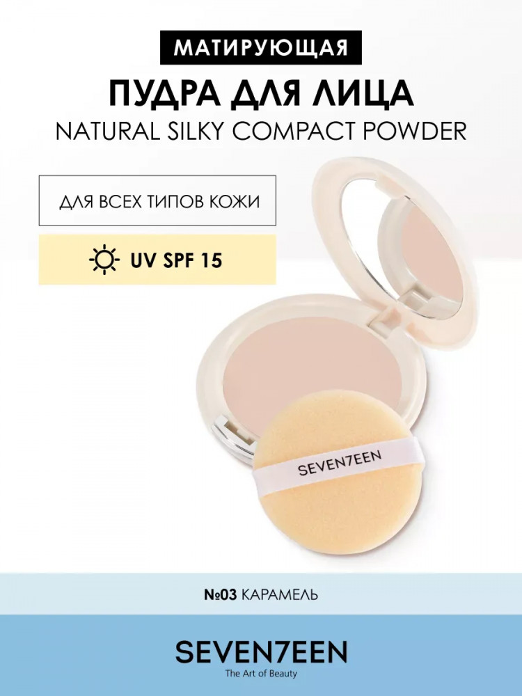 SEVEN7EEN Natural Silky Compact Powder Компактная шелковая пудра для лица SPF 15, оттенок 03 Карамель