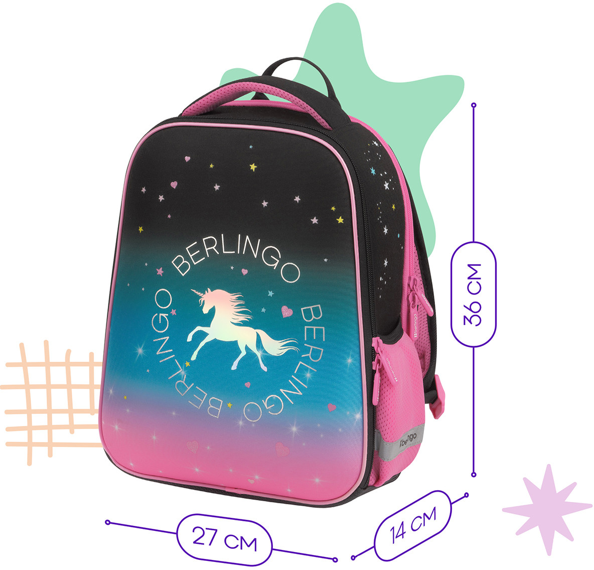 💳 Оплатить за товар можно при получении 🇰🇿 Есть бесплатная доставка по Казахстану от 1 дня 🎁 Копите бонусы с каждой покупки Серия: Perfect Эргономичный компактный ранец Berlingo размером 36×27×14 см подходит для детей младшего и среднего школьного возраста. Модель выполнена из экологичного ЭВА-материала с покрытием из высокопрочной нейлоновой ткани кордура. |