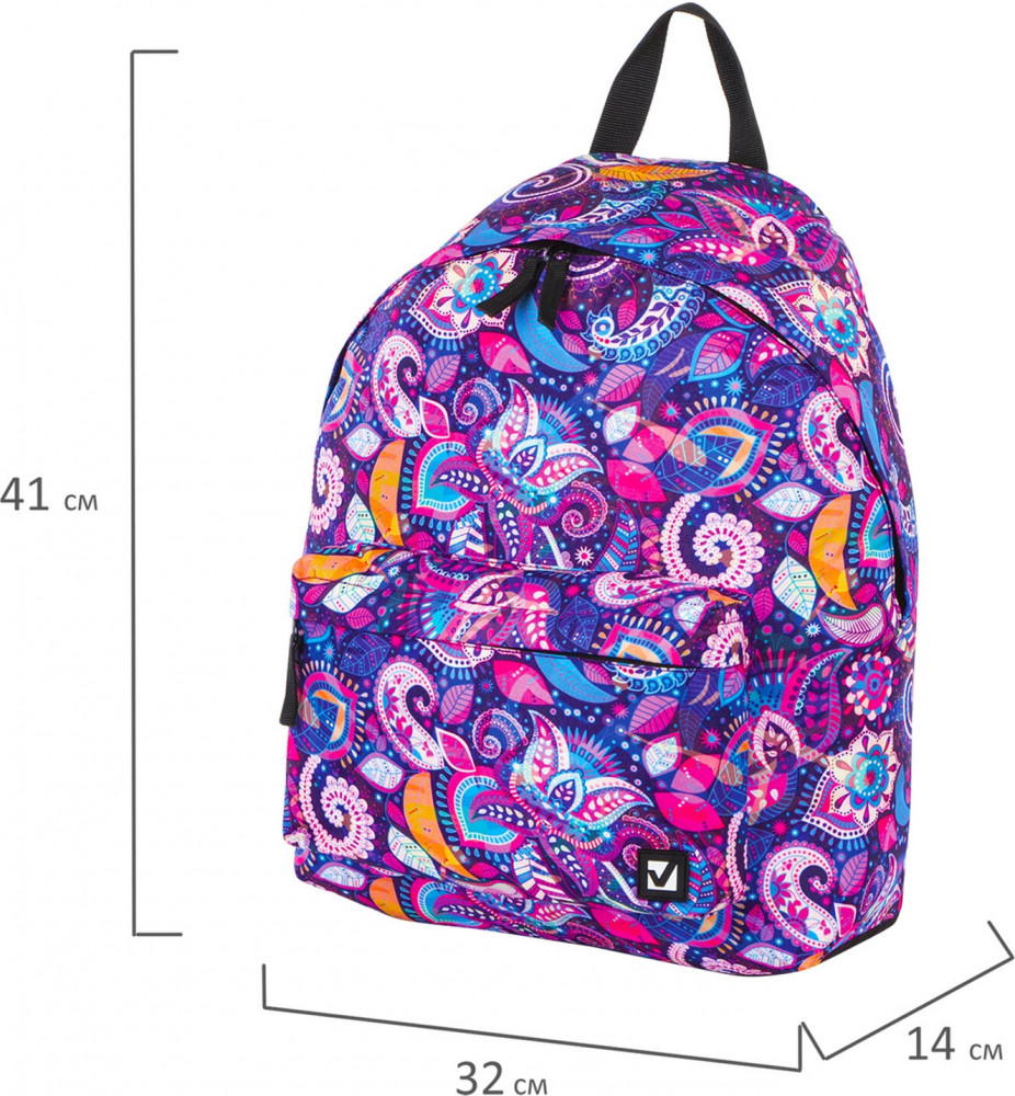 Лямки рюкзака широкие и плотные. Их легко можно отрегулировать по длине. Длина лямок — 38 см, длина регулируемой части — 53 см. Дополнительный внутренний шов позволил сделать их еще надежнее! Рюкзак обладает 1 вместительным основным отделением, в котором можно легко и быстро разместить личные вещи и большим передним карманом для различных мелочей. Такая организация пространства поможет держать вещи в сохранности и иметь быстрый доступ к ним. Рюкзак легко открывать и закрывать одной рукой с любой стороны — основное отделение имеет долговечную реверсивную молнию с двумя бегунками. Нести рюкзак будет удобно не только на плечах, но и в руке за прочную ручку, за которую так же можно повесить рюкзак на крючок.