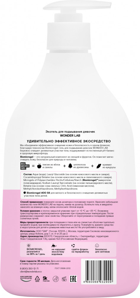 Wonder Lab Экогель для подмывания девочек-20% +95 качество нет недостатков