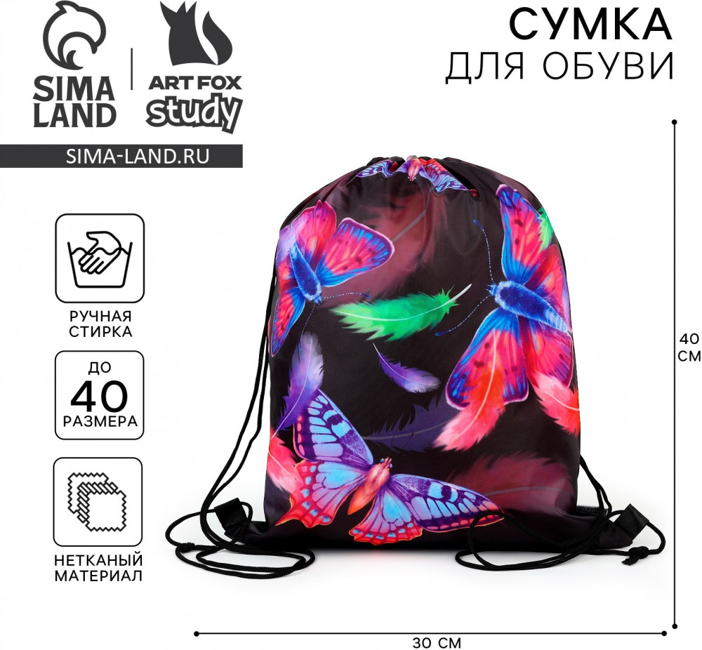 ArtFox Мешок для обуви «Яркие бабочки»В данный момент этот товар отсутствует в продаже. Возможно, у нас найдется аналогичный или похожий товар здесь. Серия: STUDY — Стиль Сумка для обуви — необходимая вещь в повседневной жизни. С ней удобно ходить на учебу, посещать тренировки и использовать для хранения личных вещей. В сумку можно сложить как сменную обувь, так и спортивную одежду. Яркая, вместительная, легко стирается и быстро сушится! |