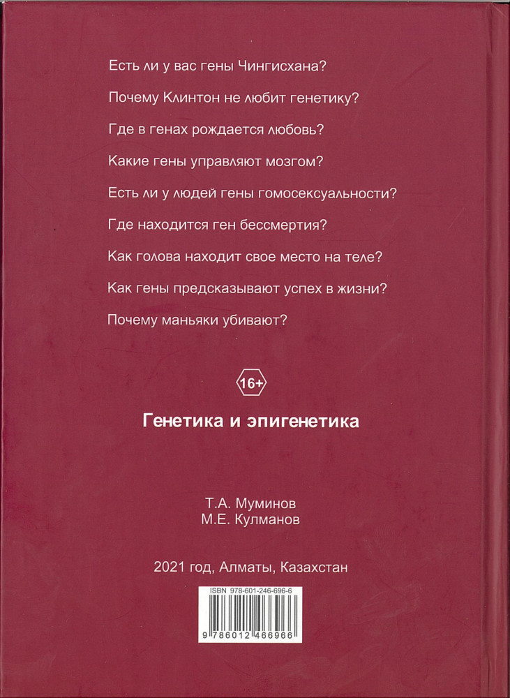 💳 Оплатить за товар можно при получении 🇰🇿 Есть бесплатная доставка по Казахстану от 1 дня 🎁 Копите бонусы с каждой покупки Как гены влияют на наше поведение? Почему человек умен, почему он любит, ненавидит, почему сводит счеты с жизнью, почему успешен в спорте, бизнесе, искусстве и почему один смел, а другой пьет, употребляет наркотики, изменяет в браке? В книге отражены новейшие достижения по оценке степени «ответственности» генов за наши поступки. Освещены вопросы редактирования генов в лечебных и профилактических целях, рассматриваются проблемы разработки новых лекарств и технологий для лечения широкого круга болезней. Излагаются материалы по эпигенетике — науке о факторах, влияющих на работу генов. Затрагиваются клинические вопросы аномалий развития легких с примерами из собственной практики. Книга предназначена для широкого круга читателей — медиков, социологов, психологов и просто для тех, кто интересуется здоровьем и генетикой. Рекомендуется в качестве учебного пособия для ВУЗов и СУЗов. |