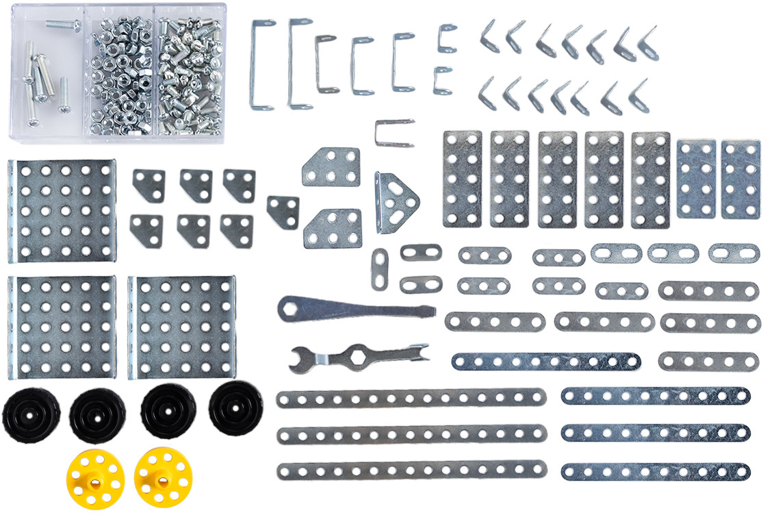 💳 Оплатить за товар можно при получении 🇰🇿 Есть бесплатная доставка по Казахстану от 1 дня 🎁 Копите бонусы с каждой покупки Серия: Конструктор металлический для уроков труда Металлический конструктор для уроков труда 5 в 1 «№ 2» в пластиковом чемоданчике — это универсальный набор для занятий конструированием. Из него можно собрать: автомобиль, байк, самолет, снегоход, вертолет. |