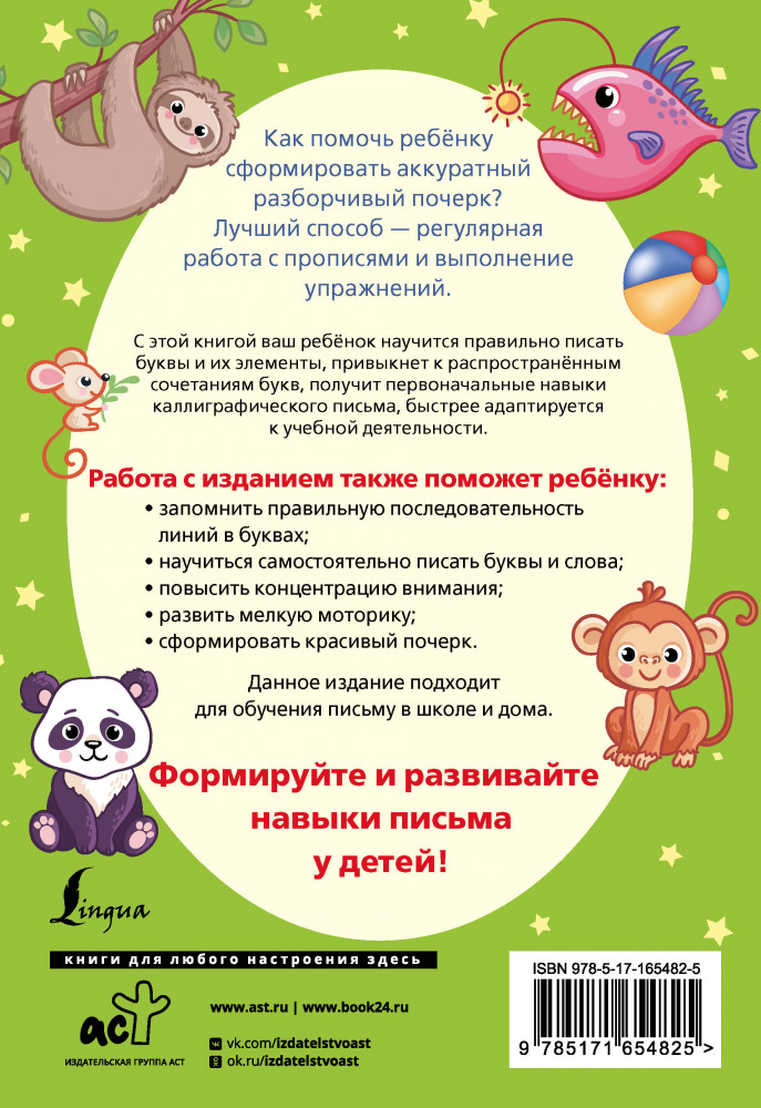 💳 Оплатить за товар можно при получении 🇰🇿 Есть бесплатная доставка по Казахстану от 1 дня 🎁 Копите бонусы с каждой покупки Серия: Лучшие тренажеры по письму Научите ребёнка писать красиво и помогите ему сформировать аккуратный почерк с помощью регулярной работы с данными прописями. Издание включает палочки, крючки, плавные и кривые линии, буквы русского алфавита со стрелками, показывающими направление линий, а также сочетания букв, слова и предложения. Выполнение упражнений помогает формировать и отрабатывать навыки разборчивого, красивого, быстрого письма. Работа с прописями положительно влияет и на память, и на внимание младшего школьника, а также на его общее развитие. Издание удобного формата предназначено для учащихся начальной школы, учителей и родителей, а также может быть полезно при подготовке детей к школе. |