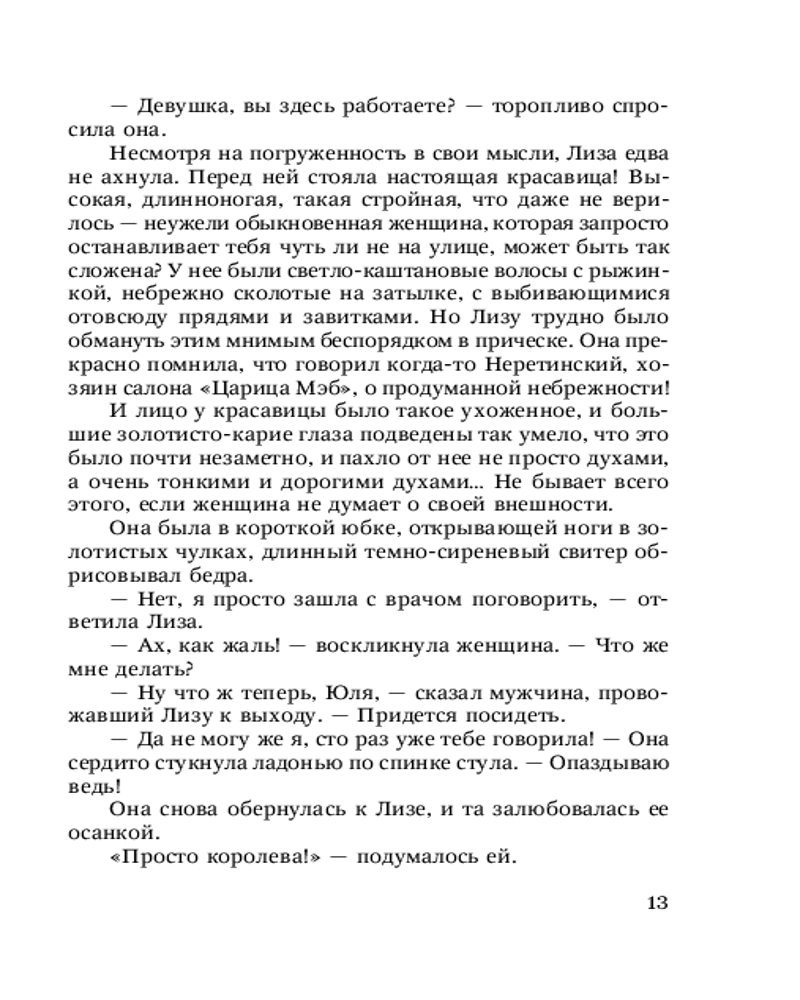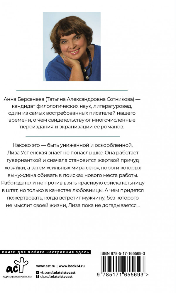 💳 Оплатить за товар можно при получении 🇰🇿 Есть бесплатная доставка по Казахстану от 1 дня 🎁 Копите бонусы с каждой покупки Серия: Фамильные ценности (м) Провинциалке Лизе Успенской повезло: жизнь с «нефтяным королем» — ключ ко всем благам мира. Одежда от модных кутюрье, еда в лучших рестранах, развлечения для избранных... Но Лиза легко отказывается от dolce vita, влюбившись в молодого врача. Она не подозревает, что ей придется подвергнуть ревизии многие свои наивные представления о жизни... |