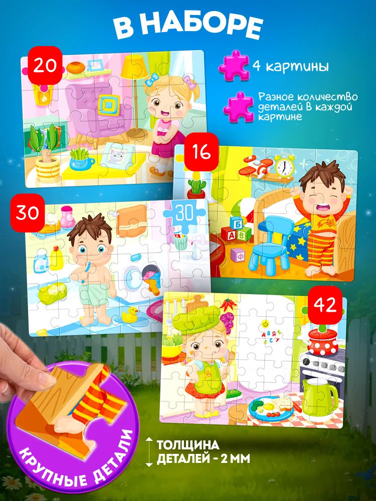 💳 Оплатить за товар можно при получении 🇰🇿 Есть бесплатная доставка по Казахстану от 1 дня 🎁 Копите бонусы с каждой покупки Серия: First Puzzle Пазлы — это самый простой и полезный способ занять ребенка. С помощью пазлов малыш развивает свою логику, внимание и мелкую моторику. А если пазлы еще и интересные по тематике, то это просто великолепно! |