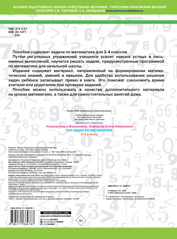 300 задач по математике. 3-4 классОльга Васильевна Узорова, Елена Алексеевна Нефедова -25% +11