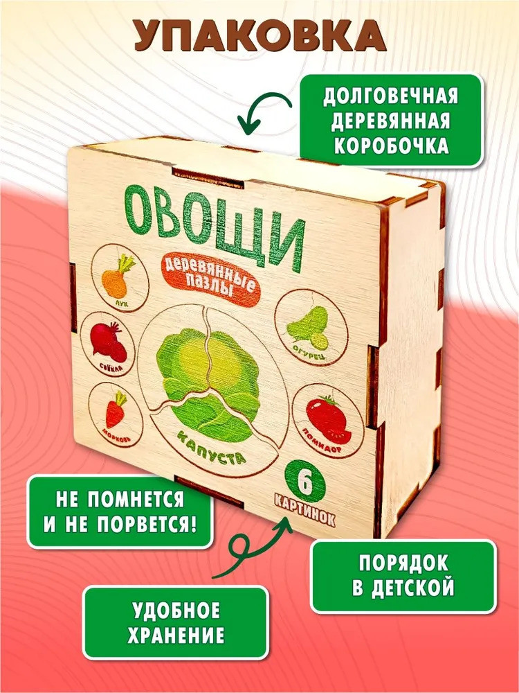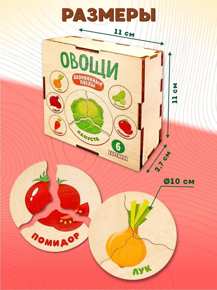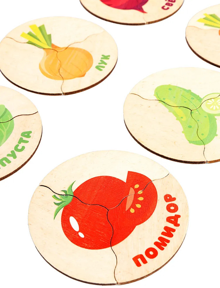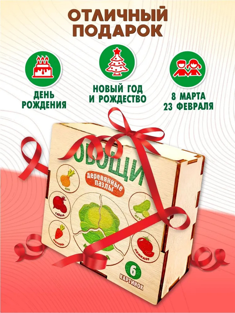💳 Оплатить за товар можно при получении 🇰🇿 Есть бесплатная доставка по Казахстану от 1 дня 🎁 Копите бонусы с каждой покупки Деревянные пазлы для детей «Овощи» — интересная развивающая игра с элементами из древесного материала (экологичной березовой фанеры).На картинках изображены фрукты и овощи - лук, свекла, морковь, огурец, помидор. Края элементов закруглены и тщательно обработаны. |