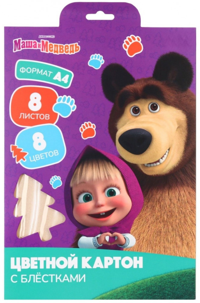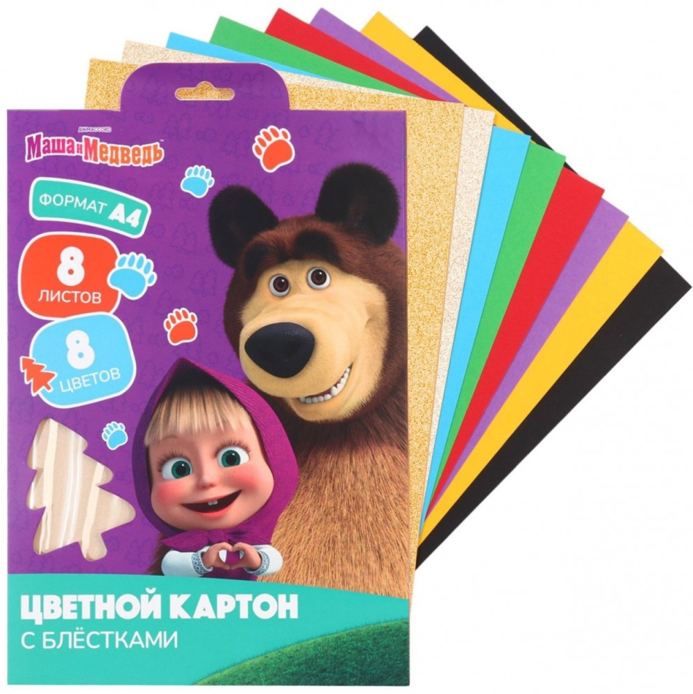 ArtFox Картон цветной с блёстками «Маша и Медведь»+42