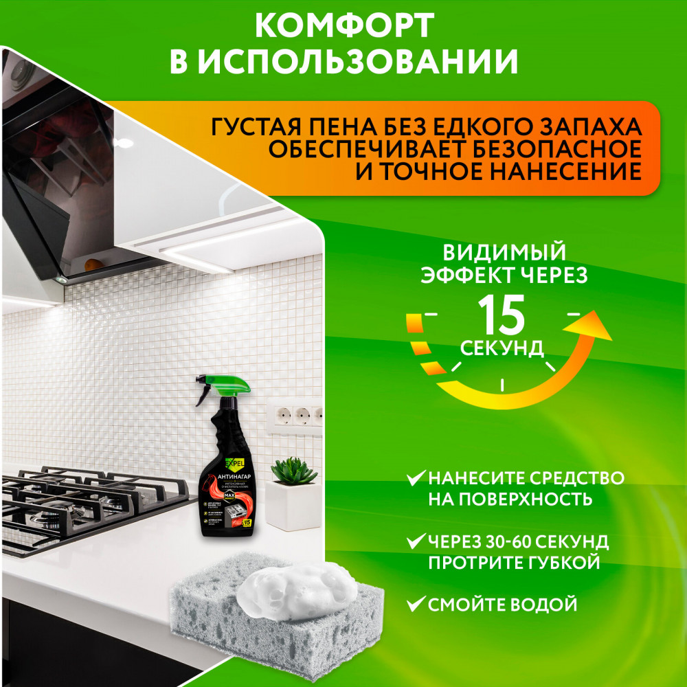 💳 Оплатить за товар можно при получении 🇰🇿 Есть бесплатная доставка по Казахстану от 1 дня 🎁 Копите бонусы с каждой покупки Интенсивный очиститель для кухни Expel — это неотъемлемый помощник в борьбе с самыми трудными и застаревшими жировыми загрязнениями. Благодаря своей мощной формуле и повышенному содержанию щелочных компонентов в составе, очиститель эффективно справляется со старым пригоревшим жиром, нагаром и копотью. Антинагар Expel идеально подходит для очистки духовых шкафов, плит и вытяжек, обеспечивая безупречную чистоту на кухне. Справляется даже в запущенных случаях. Густая активная пена обеспечивает точное и безопасное нанесение на поверхность, проникает глубоко внутрь загрязнений и разрушает их изнутри. Результат будет практически мгновенным, ведь уже через 15 секунд вы заметите видимый эффект. Современные разработки позволили сделать средство не только эффективным, но комфортным в использовании, поскольку очиститель не имеет резкого интенсивного запаха. Доверьтесь очистителю для кухни Expel и наслаждайтесь безупречной чистотой вашей кухни без лишних хлопот. |