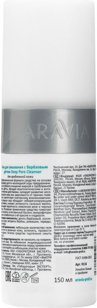 Aravia Гель для умывания с березовым дегтем «Deep pore cleanser»