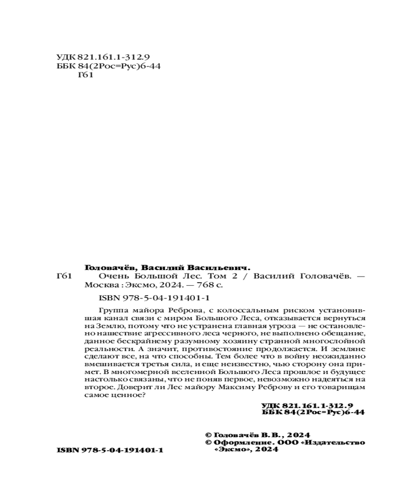 💳 Оплатить за товар можно при получении 🇰🇿 Есть бесплатная доставка по Казахстану от 1 дня 🎁 Копите бонусы с каждой покупки Серия: Стальные страницы Группа майора Реброва, с колоссальным риском установившая канал связи с миром Большого Леса, отказывается вернуться на Землю, потому что не устранена главная угроза — не остановлено нашествие агрессивного леса черного, не выполнено обещание, данное бескрайнему разумному хозяину странной многослойной реальности. А значит, противостояние продолжается. И земляне сделают все, на что способны. Тем более что в войну неожиданно вмешивается третья сила, и еще неизвестно, чью сторону она примет. В многомерной вселенной Большого Леса прошлое и будущее настолько связаны, что не поняв первое, невозможно надеяться на второе. Доверит ли Лес Майору Максиму Реброву и его товарищам самое ценное? |