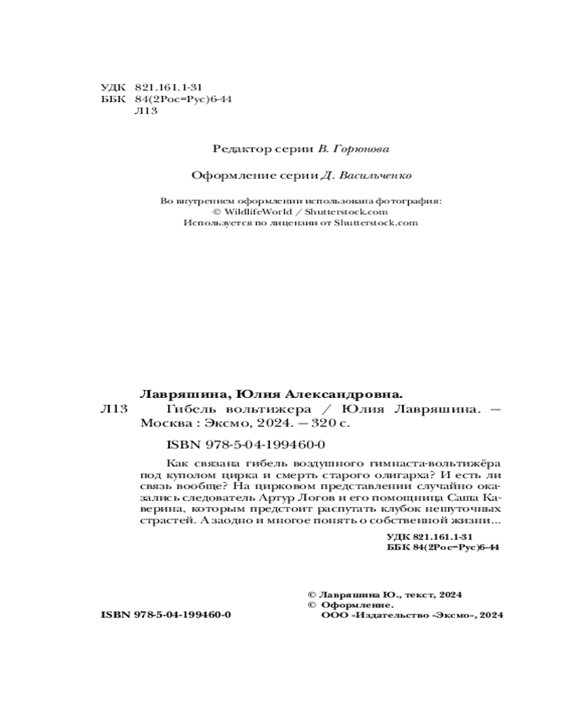 💳 Оплатить за товар можно при получении 🇰🇿 Есть бесплатная доставка по Казахстану от 1 дня 🎁 Копите бонусы с каждой покупки Серия: Тень Логова. Детективные романы Ю. Лавряшиной «Гибель вольтижера» — шестая книга в цикле психологических детективов Юлии Лавряшиной. |