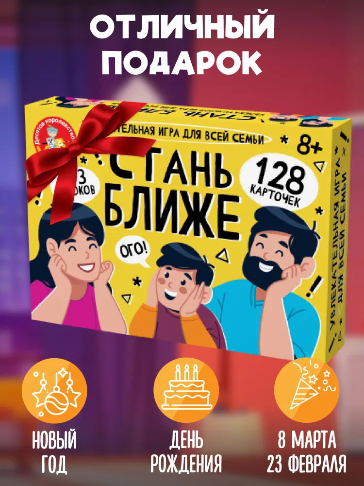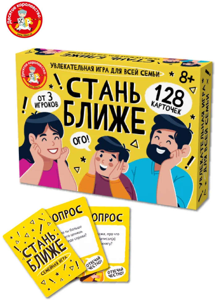 💳 Оплатить за товар можно при получении 🇰🇿 Есть бесплатная доставка по Казахстану от 1 дня 🎁 Копите бонусы с каждой покупки Серия: Стань ближе Как любой день превратить в праздник? Сыграть в настольную игру «Для семьи» серии «Стань ближе»! Ведь в них так много интересных и смешных заданий, которые понравятся и взрослым, и детям. Скорее собирайтесь дружной компанией и начинайте играть. |