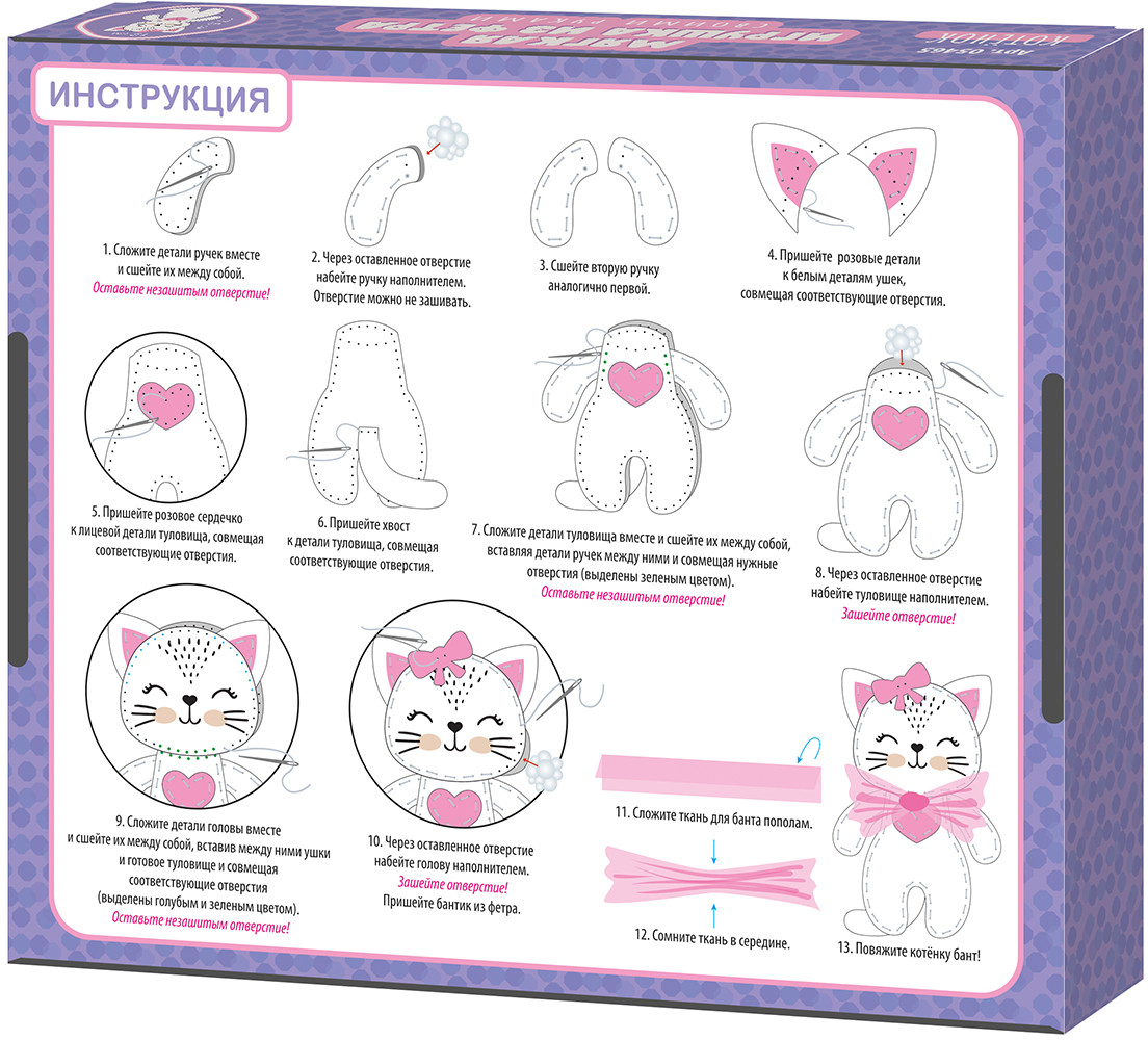 💳 Оплатить за товар можно при получении 🇰🇿 Есть бесплатная доставка по Казахстану от 1 дня 🎁 Копите бонусы с каждой покупки Мягкая игрушка из фетра «Котенок» — это набор для творчества, благодаря которому у ребёнка есть возможность сшить прелестную игрушку своими руками. Очаровательная мягкая фетровая игрушка станет приятным подарком для ваших близких. Создание игрушки своими руками способствует воспитанию усидчивости, развитию фантазии, творческого мышления, мелкой моторики и навыков шитья. |