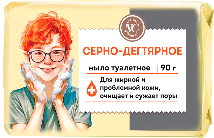 Невская Косметика Мыло туалетное «Серно-дегтярное»-20% +24 очищает натуральный состав хорошее качество эффективное подходит для вечернего использования сильный запах