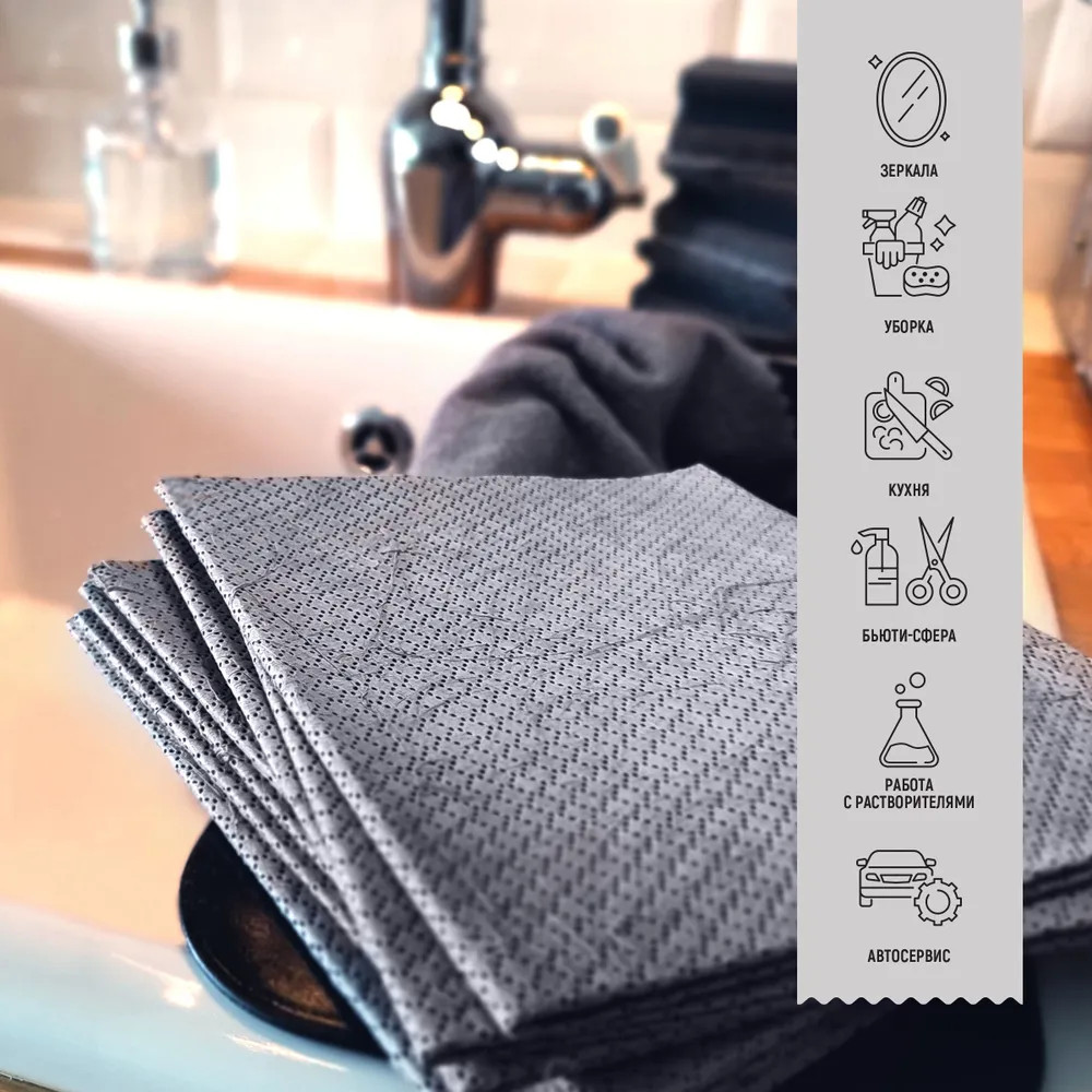 💳 Оплатить за товар можно при получении 🇰🇿 Есть бесплатная доставка по Казахстану от 1 дня 🎁 Копите бонусы с каждой покупки Профессиональные протирочные средства из уникального материала. Инновационный состав обеспечивает практически такой же эффект, как тряпки из микрофибры. Справляется с водой, грязью, жиром. А также с масляными пятнами, отпечатками пальцев. Не оставляет разводов на стеклах и зеркалах. Подходит для обезжиривания, для работы с растворителями. |